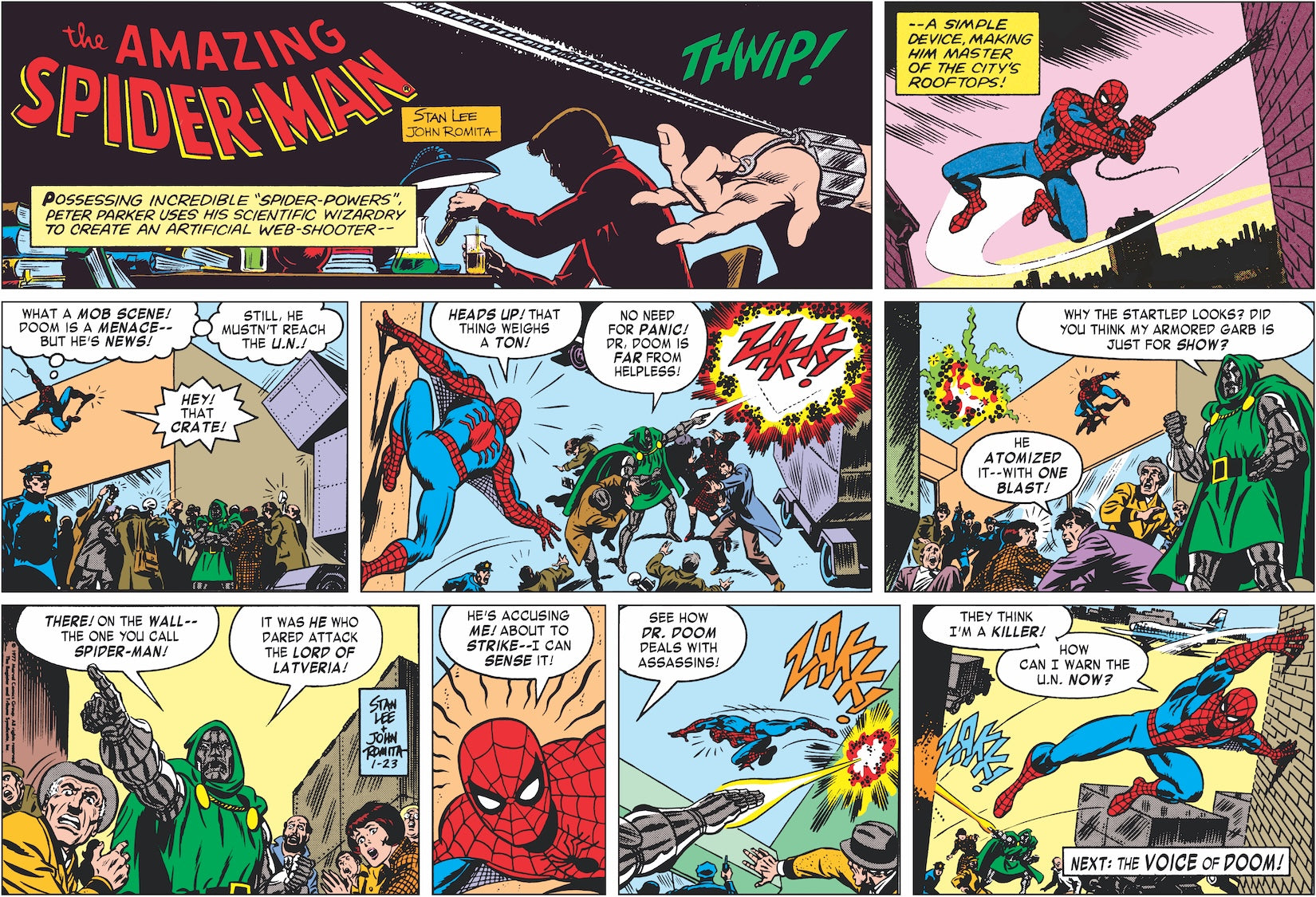 The wall-crawler swings into his first year of the long-running Spider-Man newspaper strips, brought to life by the legendary team of Stan Lee and John Romita! Every exciting adventure is presented just as readers experienced them nationwide, with the full-color Sunday pages integrated with the dailies!