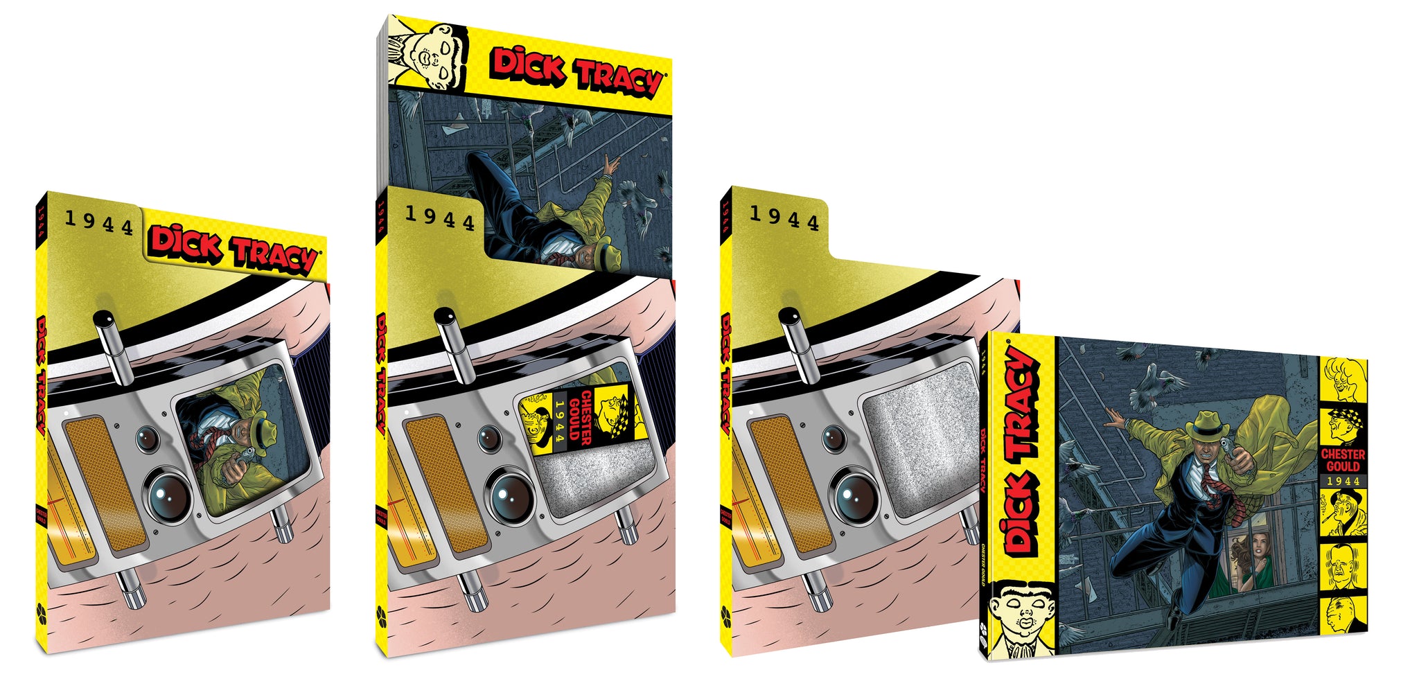 Introducing Clover Press and The Library of American Comics’ new deluxe softcover slipcase series, collecting all of Chester Gould’s Dick Tracy newspaper strip. Every volume collects a full year of newspaper strips, from January 1 through December 31. Each book is printed in an 11” x 8.5” landscape format softcover book that slides into a vertically oriented die-cut slipcase!